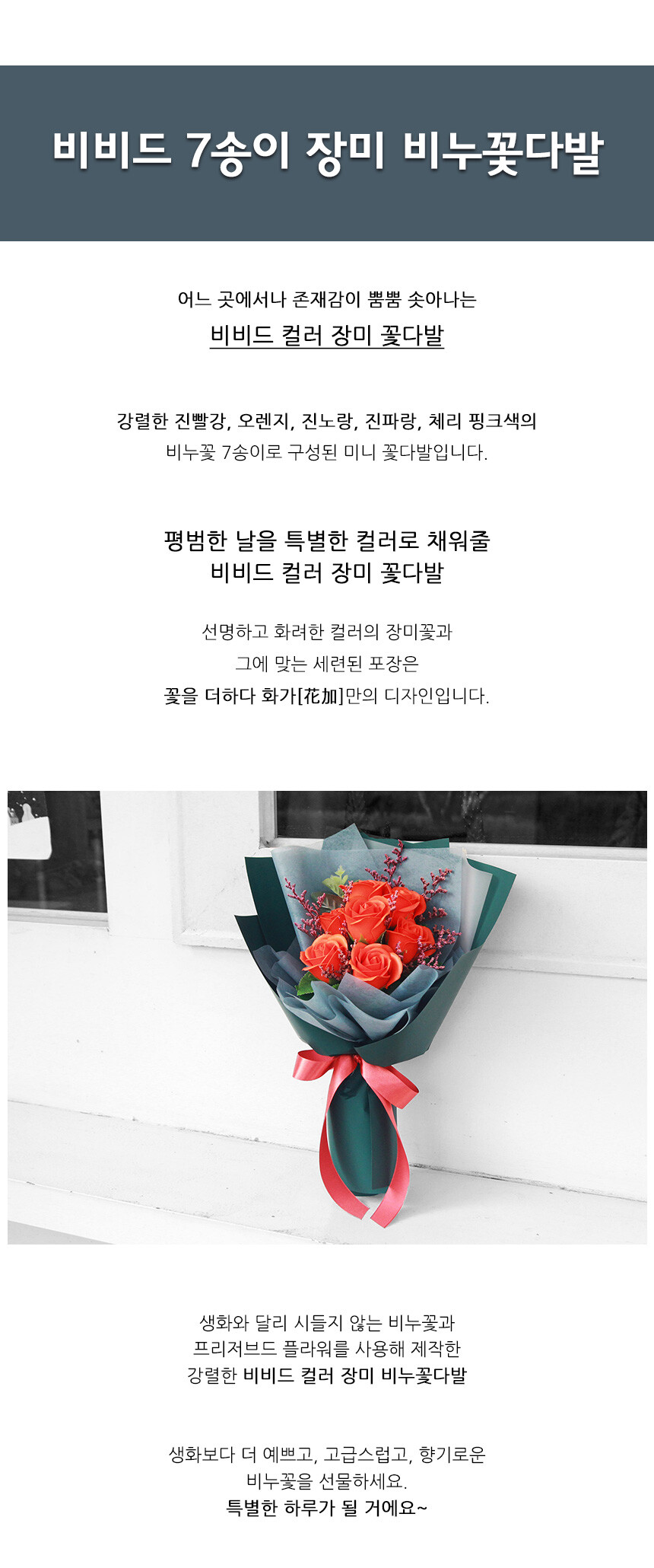 비비드 7송이 장미 꽃다발
