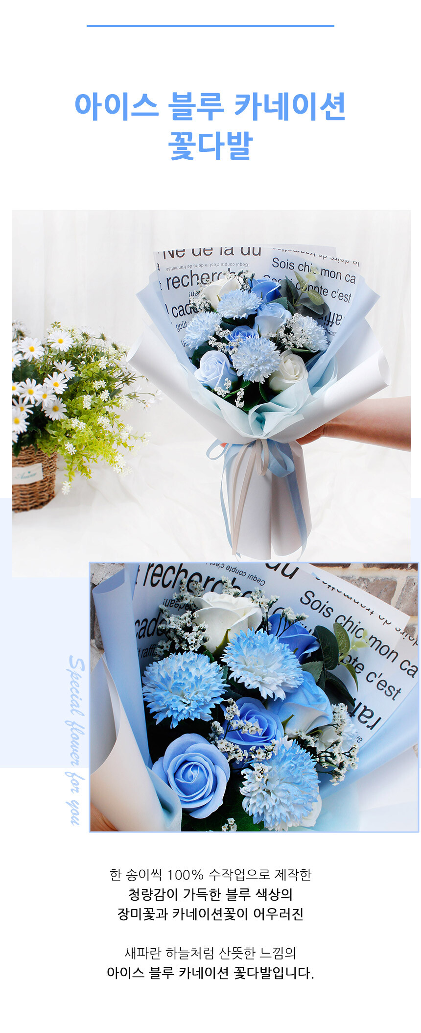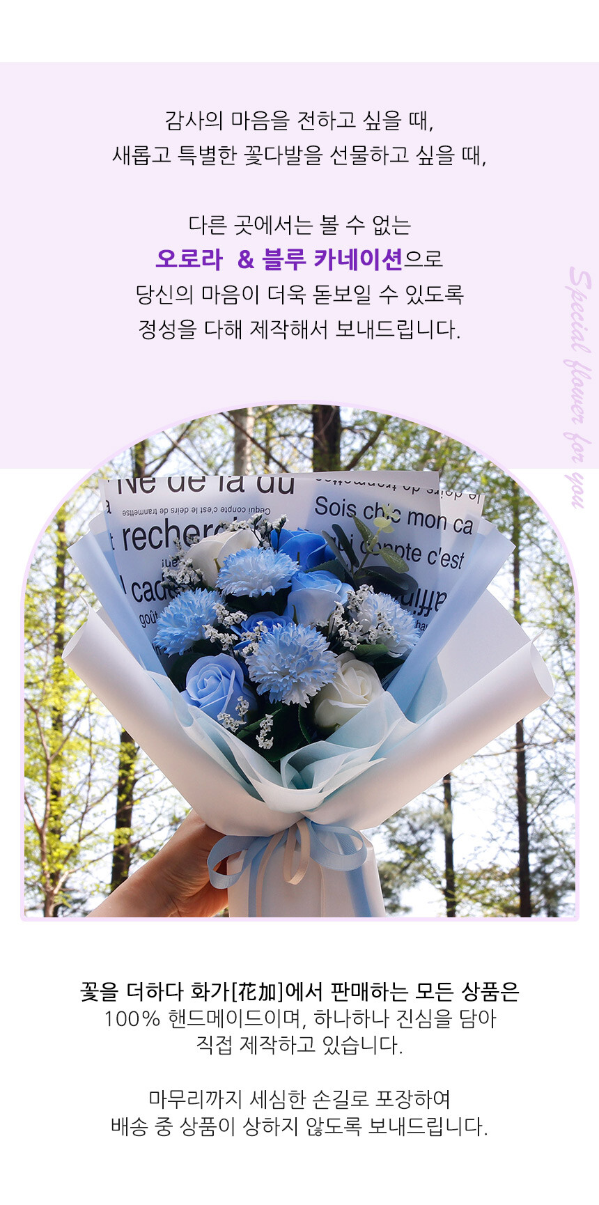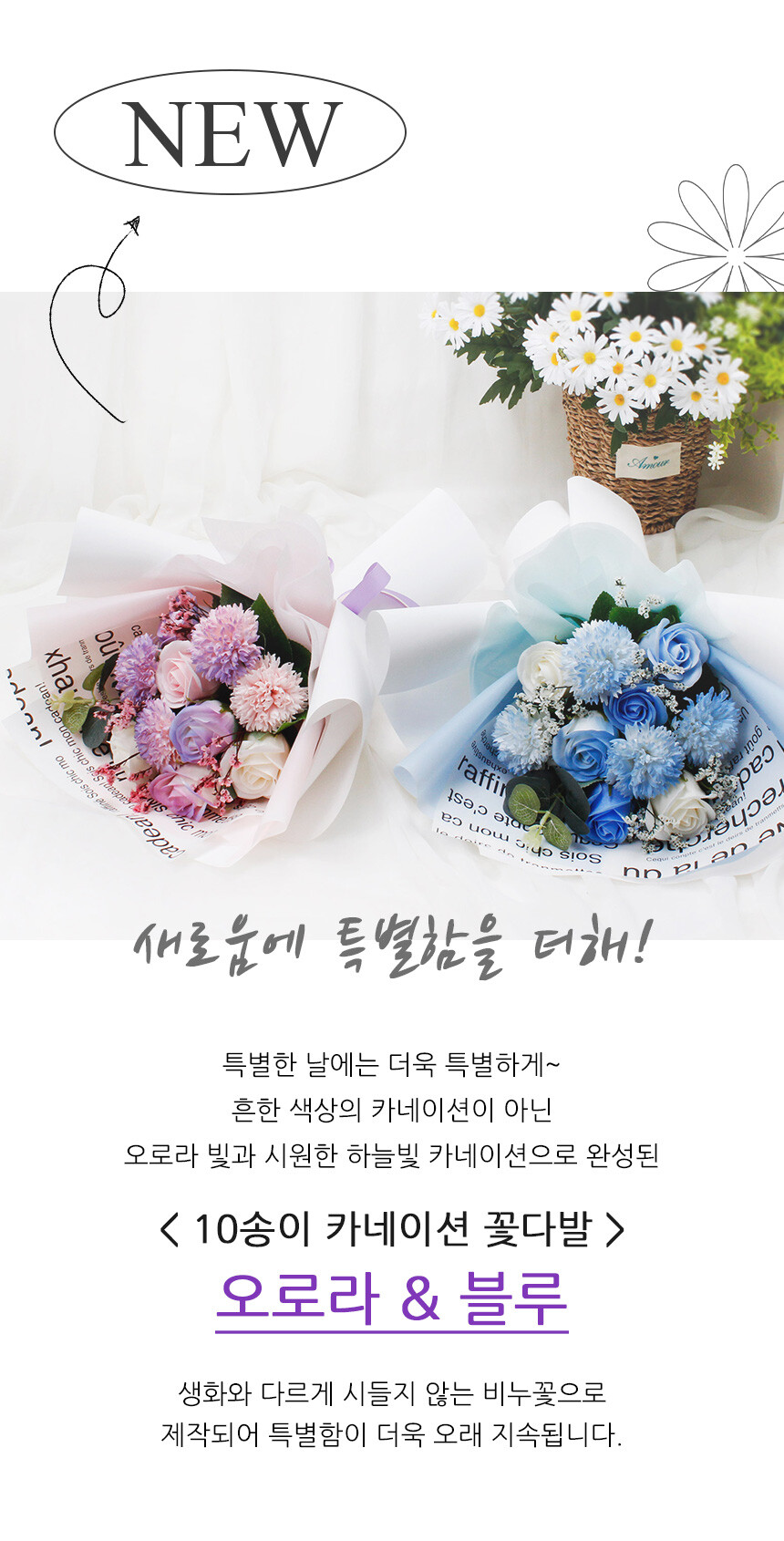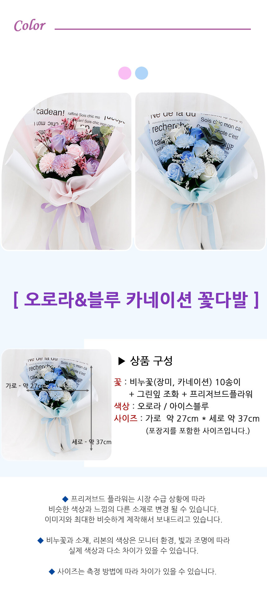특별한 날에는 더욱 특별하게!! 오로라 빛과 시원한 하늘빛 카네이션으로 완성된 아름다운 꽃다발