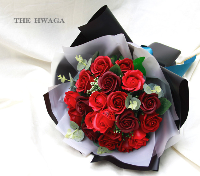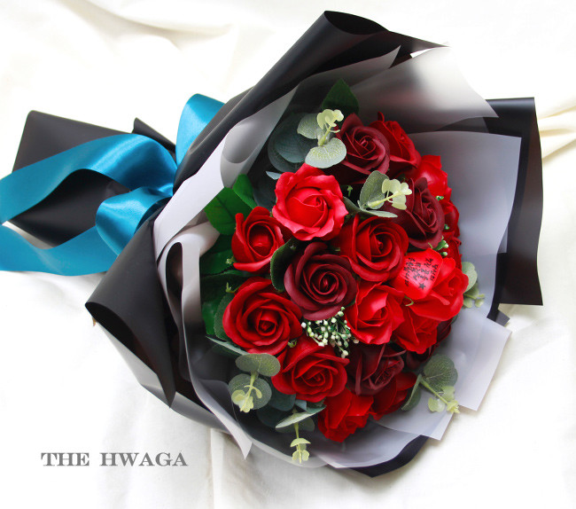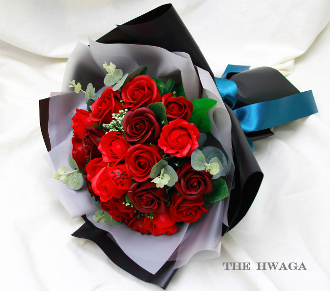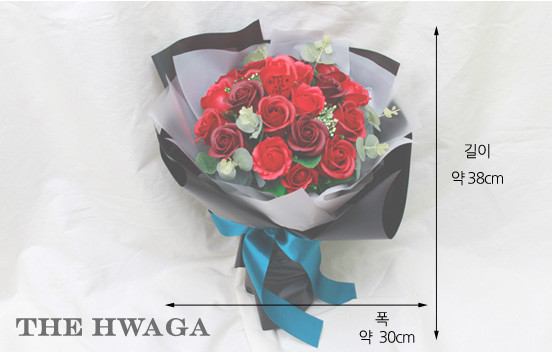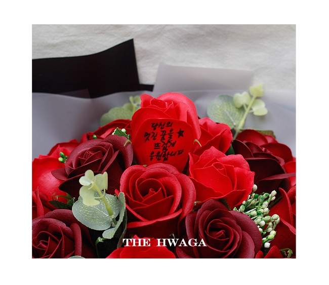 상품구성 : 장미비누꽃 19송이,메세지비누꽃 1송이(총 20송이),조화 열매, 잎