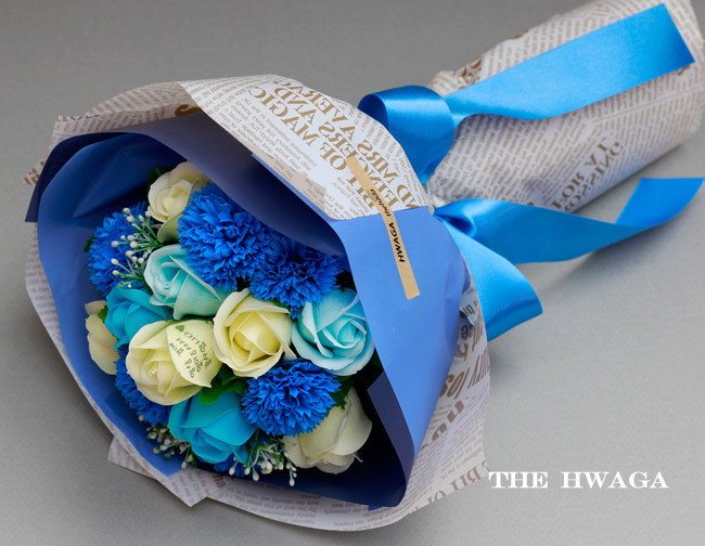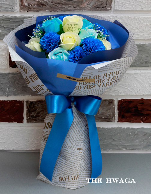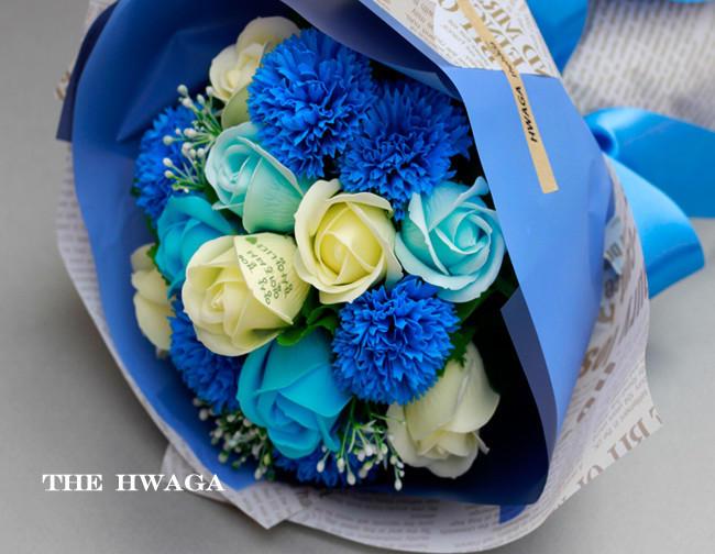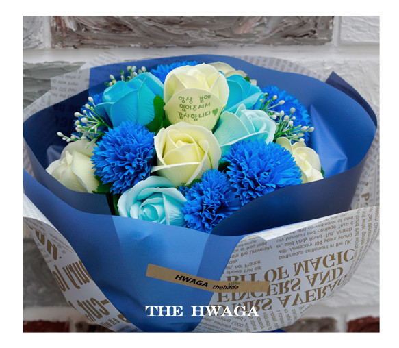 상품구성 : 장미, 카네이션 비누꽃 14송이,메세지비누꽃 1송이(총 15송이),조화 열매, 잎