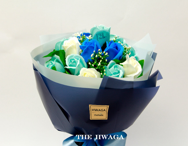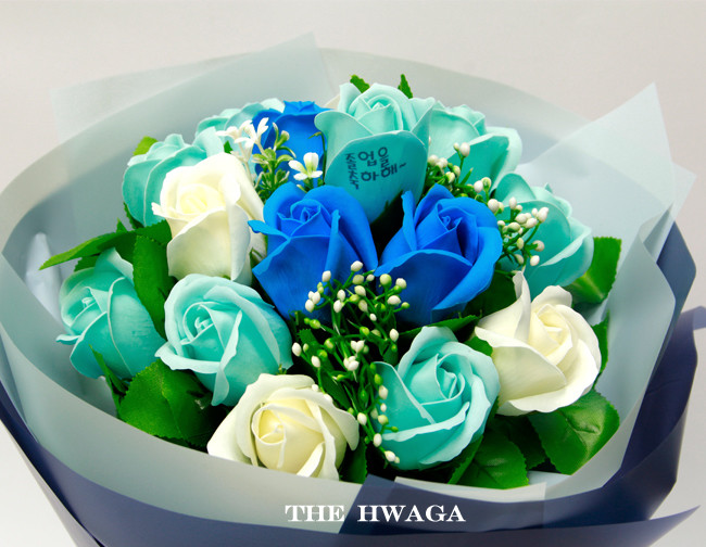 상품구성 : 장미비누꽃 14송이,메세지비누꽃 1송이(총 15송이),조화 열매, 잎