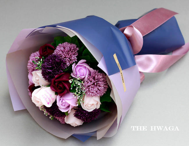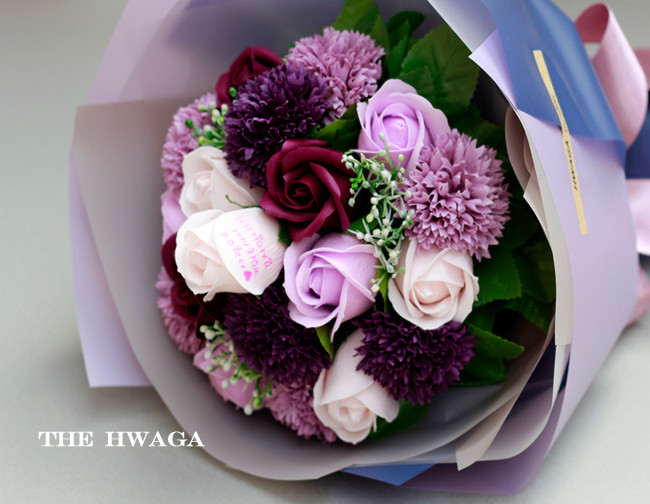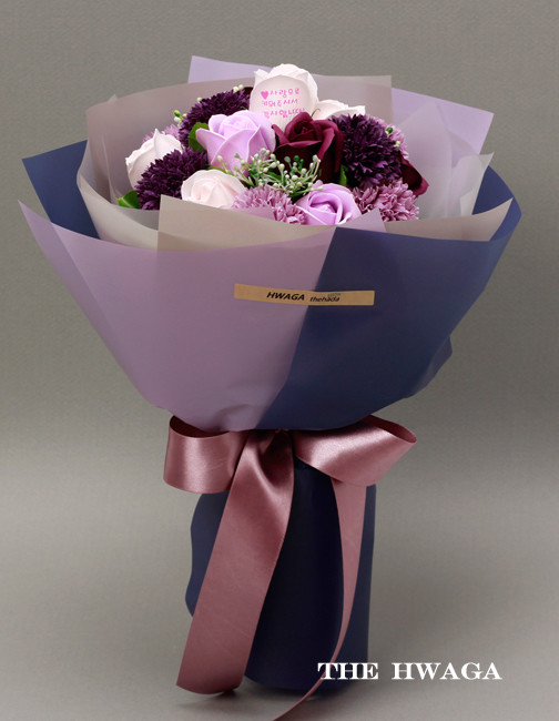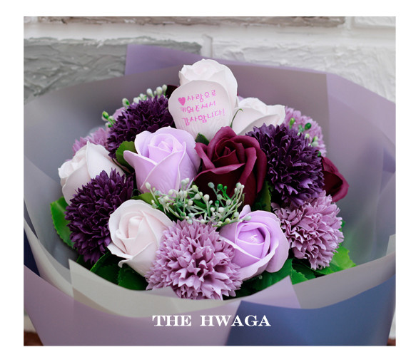 상품구성 : 장미, 카네이션 비누꽃 19송이,메세지비누꽃 1송이(총 20송이),조화 열매, 잎
