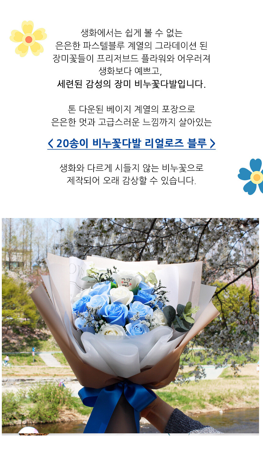 프리저브드 20송이 꽃다발_리얼로즈_블루