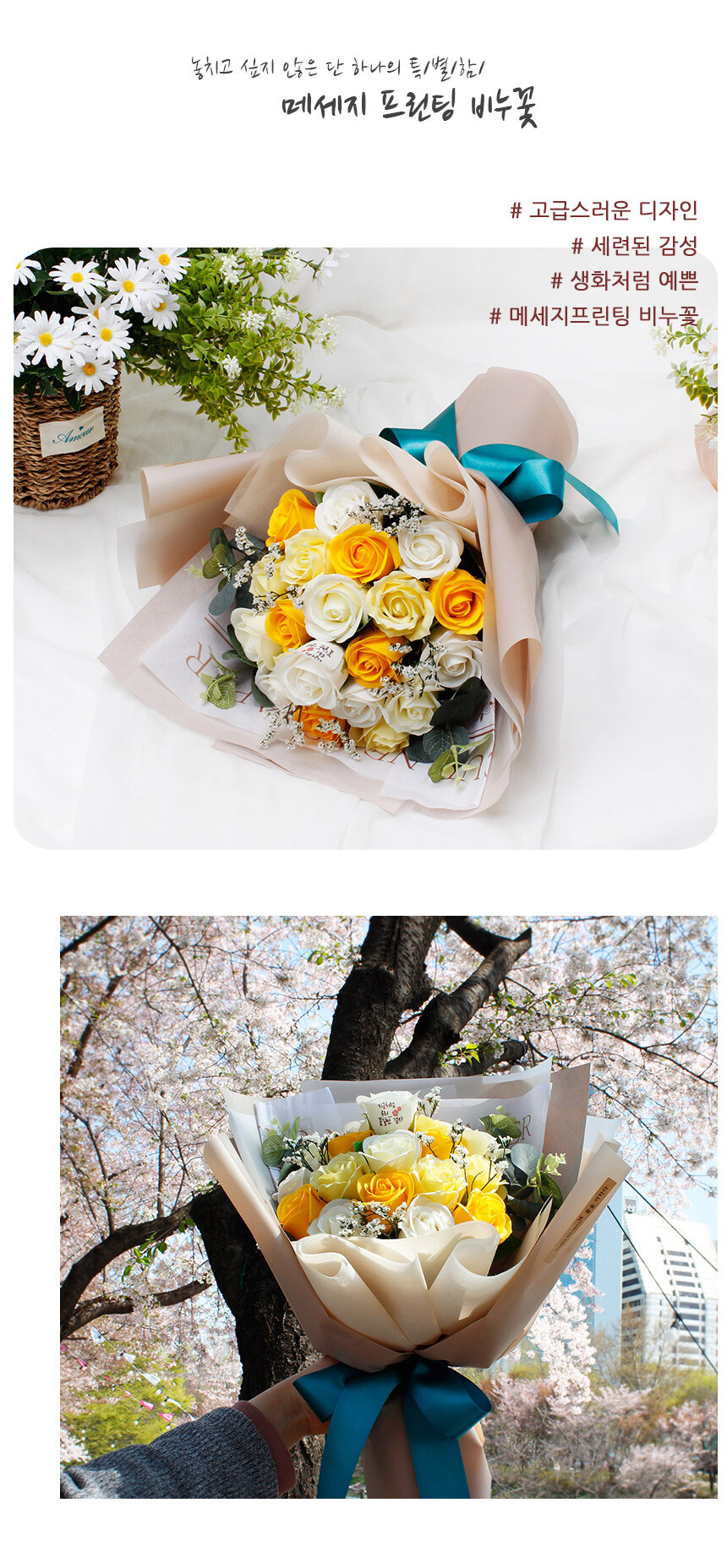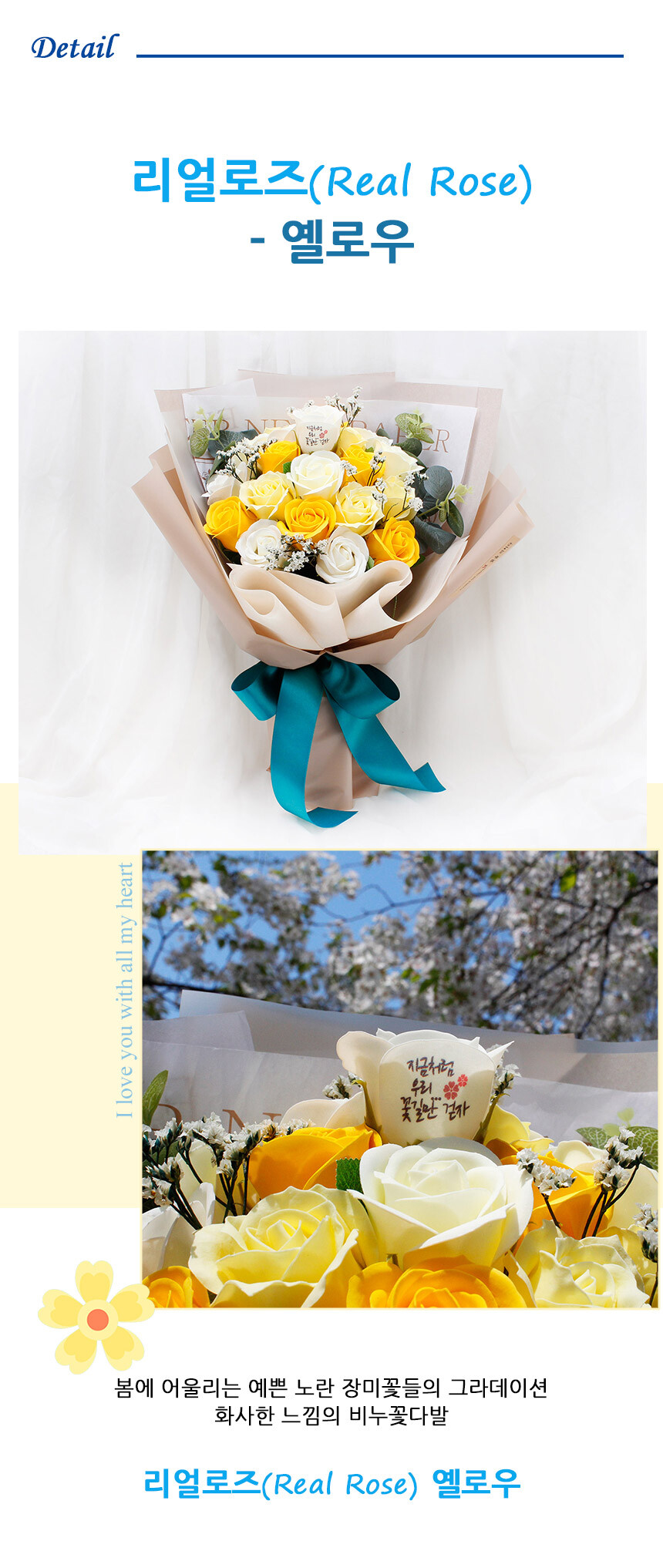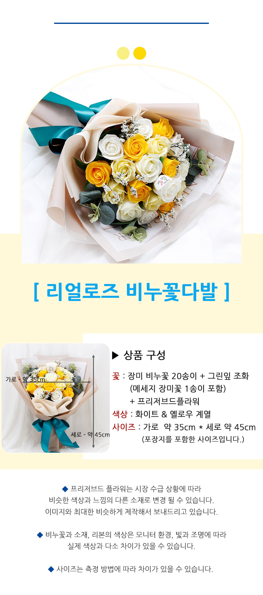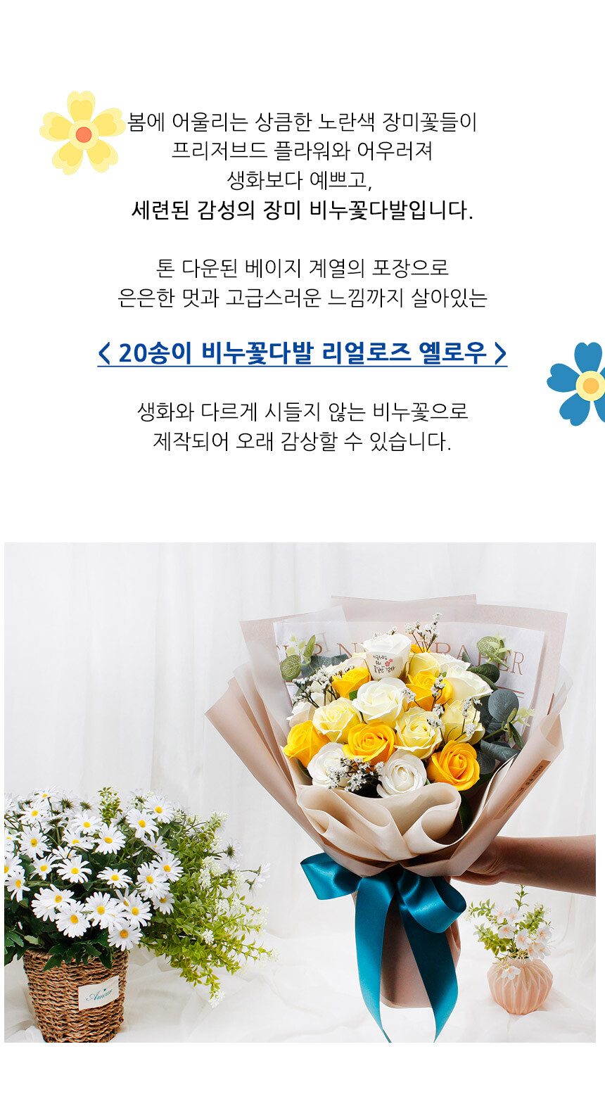 프리저브드 20송이 꽃다발_리얼로즈_옐로우