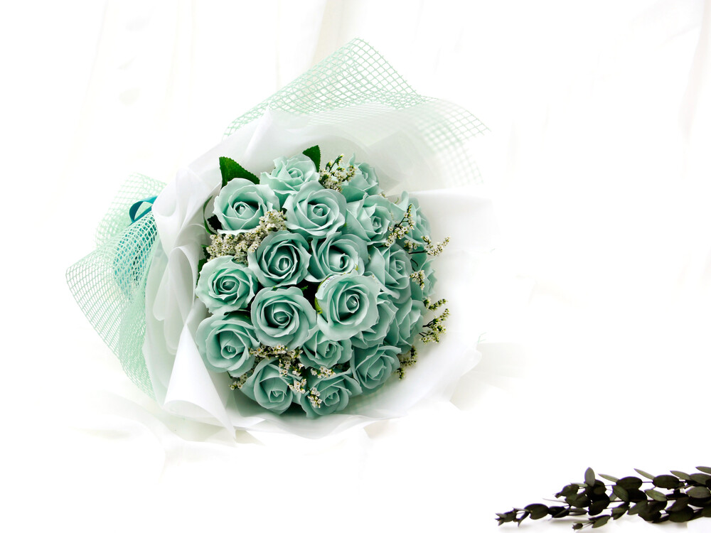 민트 계열의 장미꽃과 화이트 시네시스(프리저브드)와