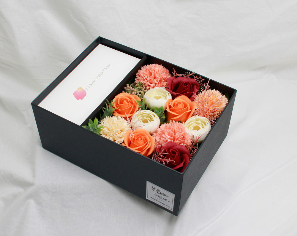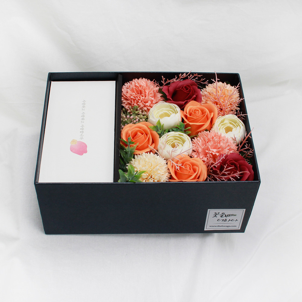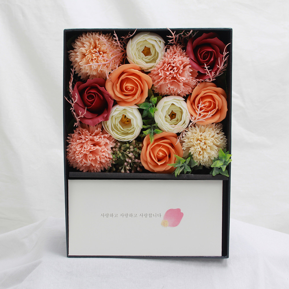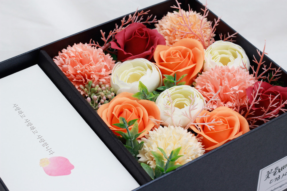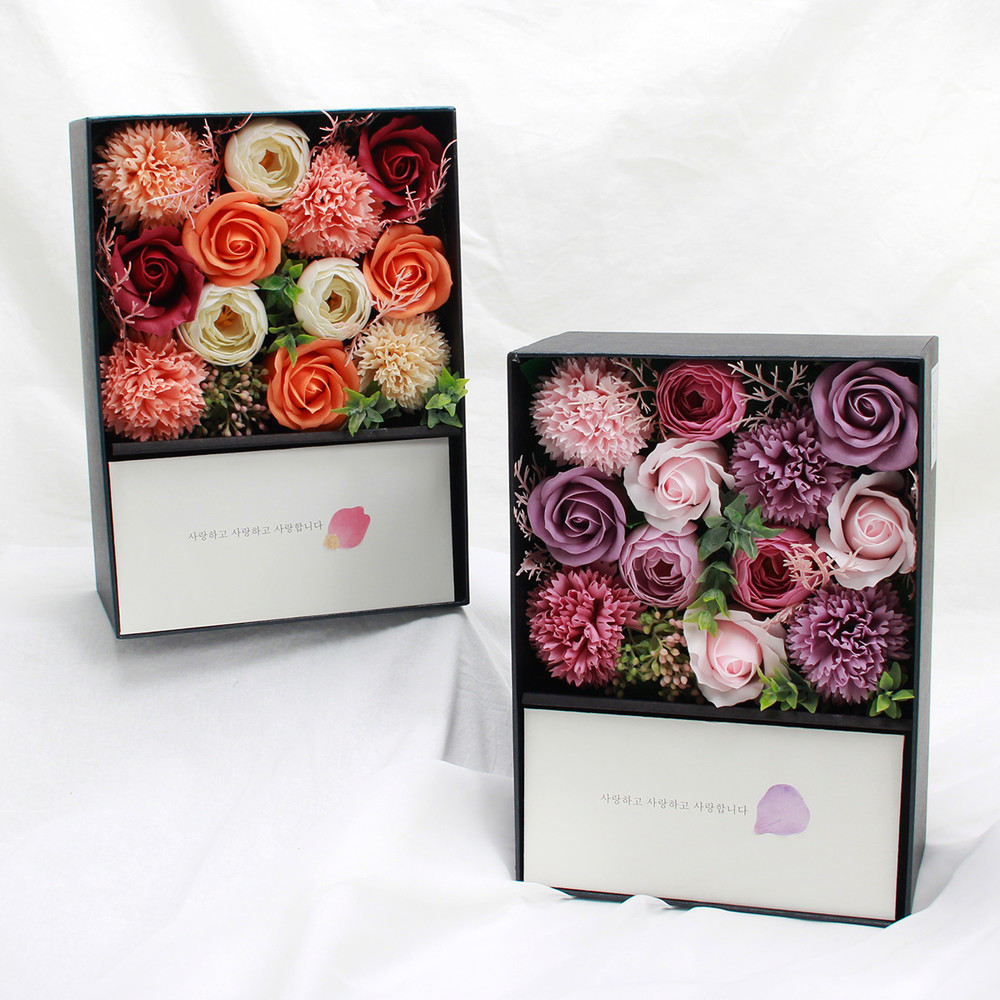 상품구성 : 카네이션 비누꽃 4송이,장미 비누꽃 5송이, 라넌큘러스 비누꽃 3송이