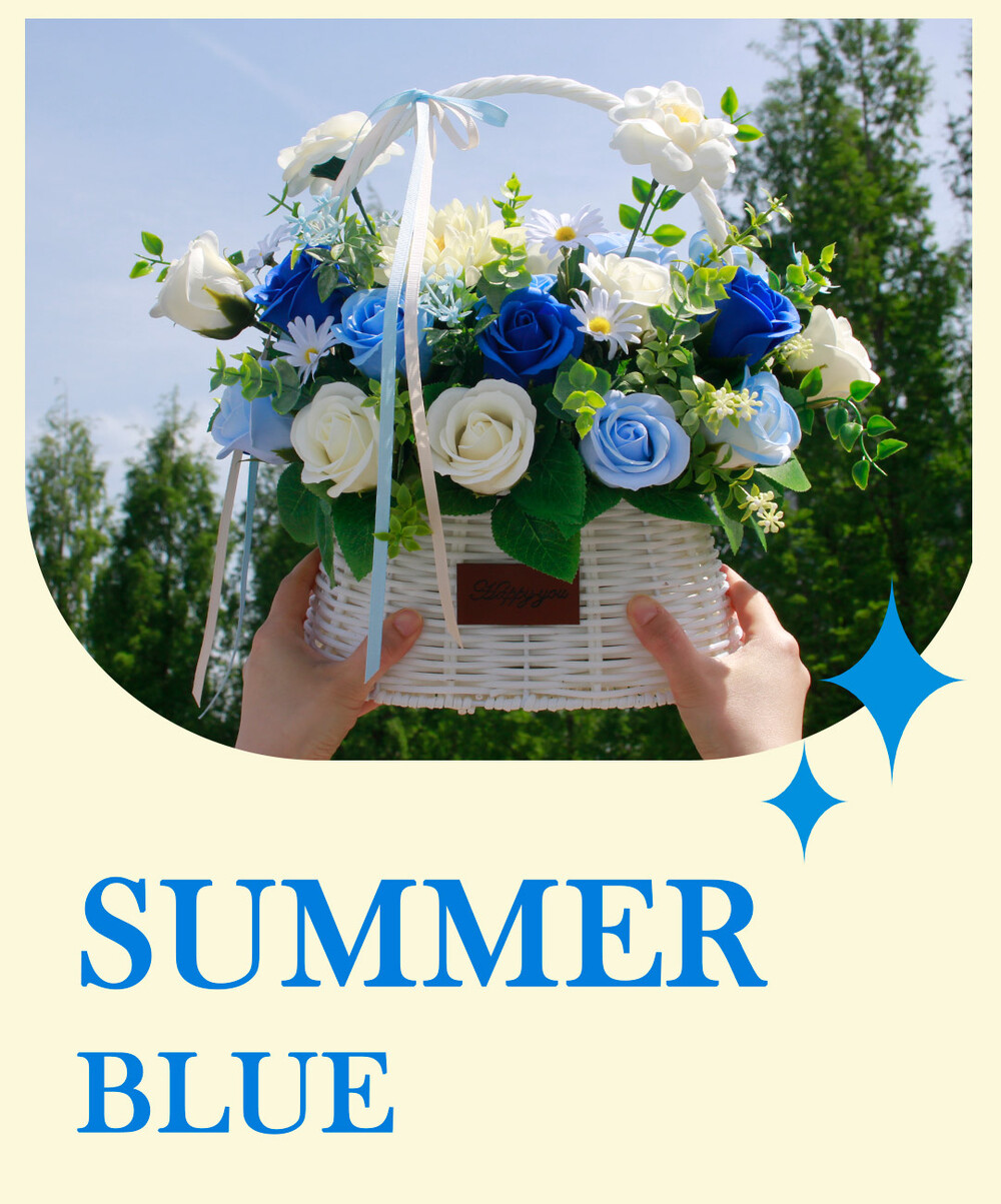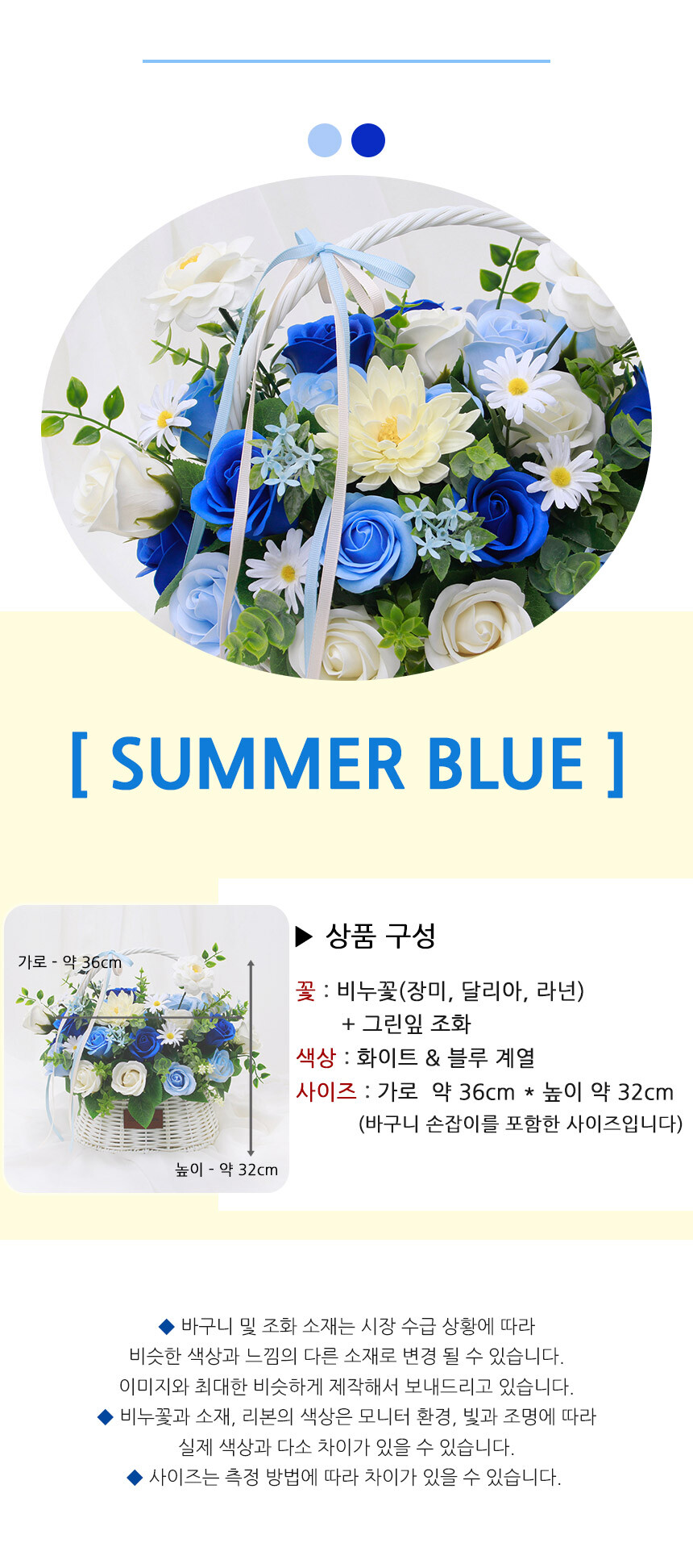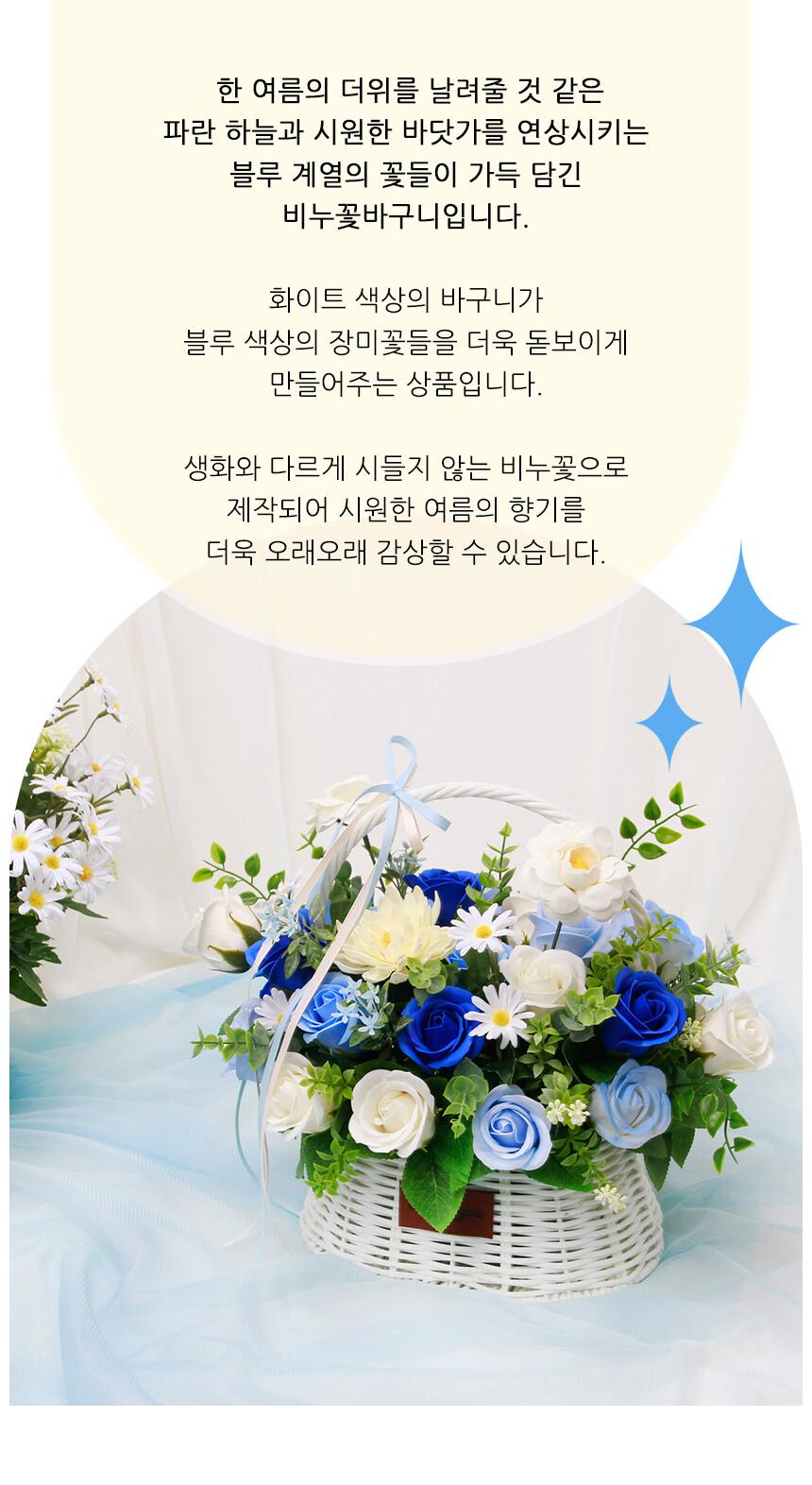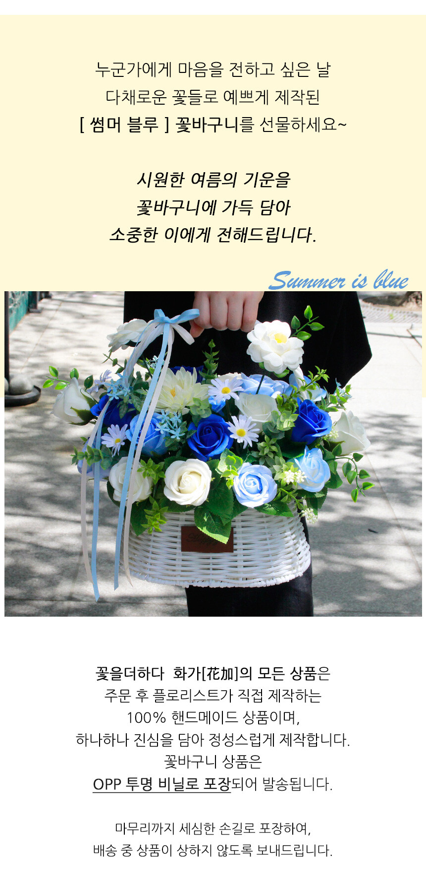 싱그러운 바람이 불 듯, 파아란 하늘과 푸른 바닷가를 연상시키는 블루 바스켓