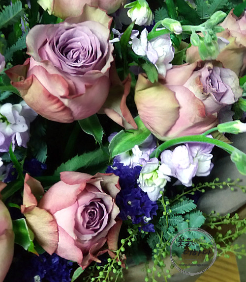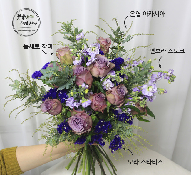 상품구성 : 돌세토 장미, 스토크, 스타티스, 은엽아카시아