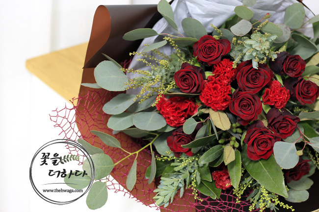 상품구성 : 도미니카 장미, 맨드라미, 태산목, 은엽 아카시아