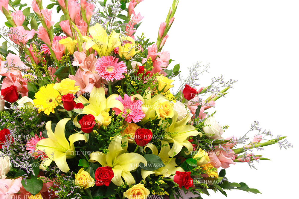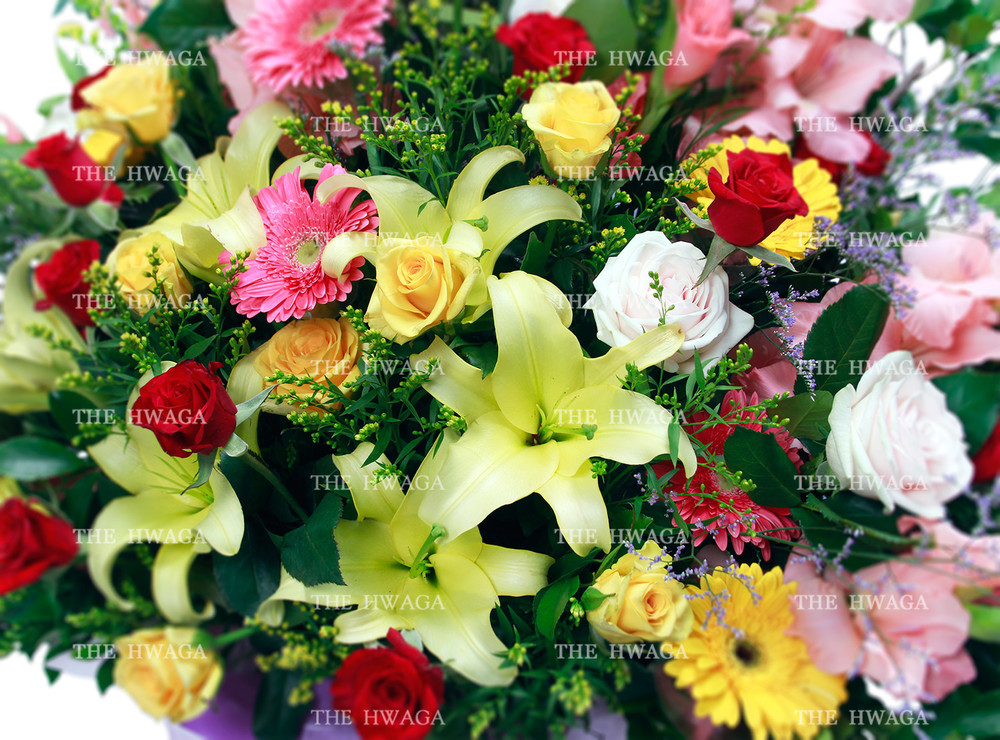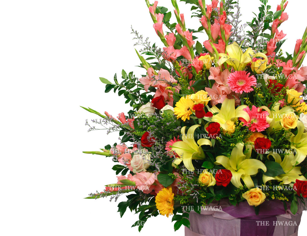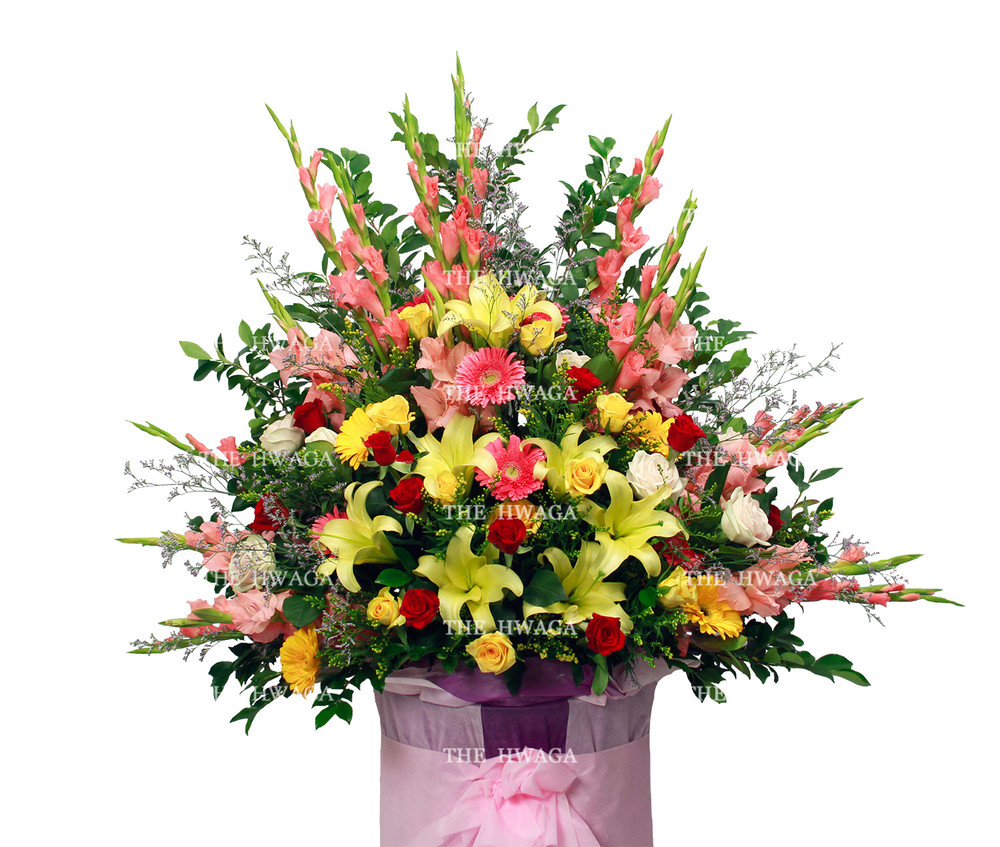상품구성 : 장미, 거베라, 옐로우윈, 글라디올러스, 솔리다스, 미스티블루, 청진목